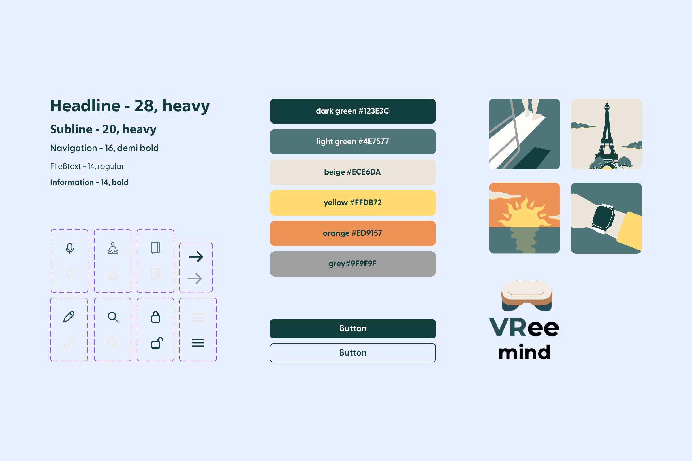 We created a design system for our final design of the app. The selected colors ensure that the app makes a serious and trustworthy impression. In order to make the app appear more personal, we created illustrations to support patients in the best possible way.
